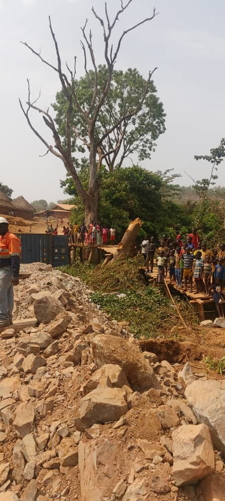 Route d’accès : un Pont en conteneur est en cours de réalisation à Amina pour relier le village au nouveau collège construit à travers le FODEL. Le cout de réalisation est de 231,830,000 GNF.