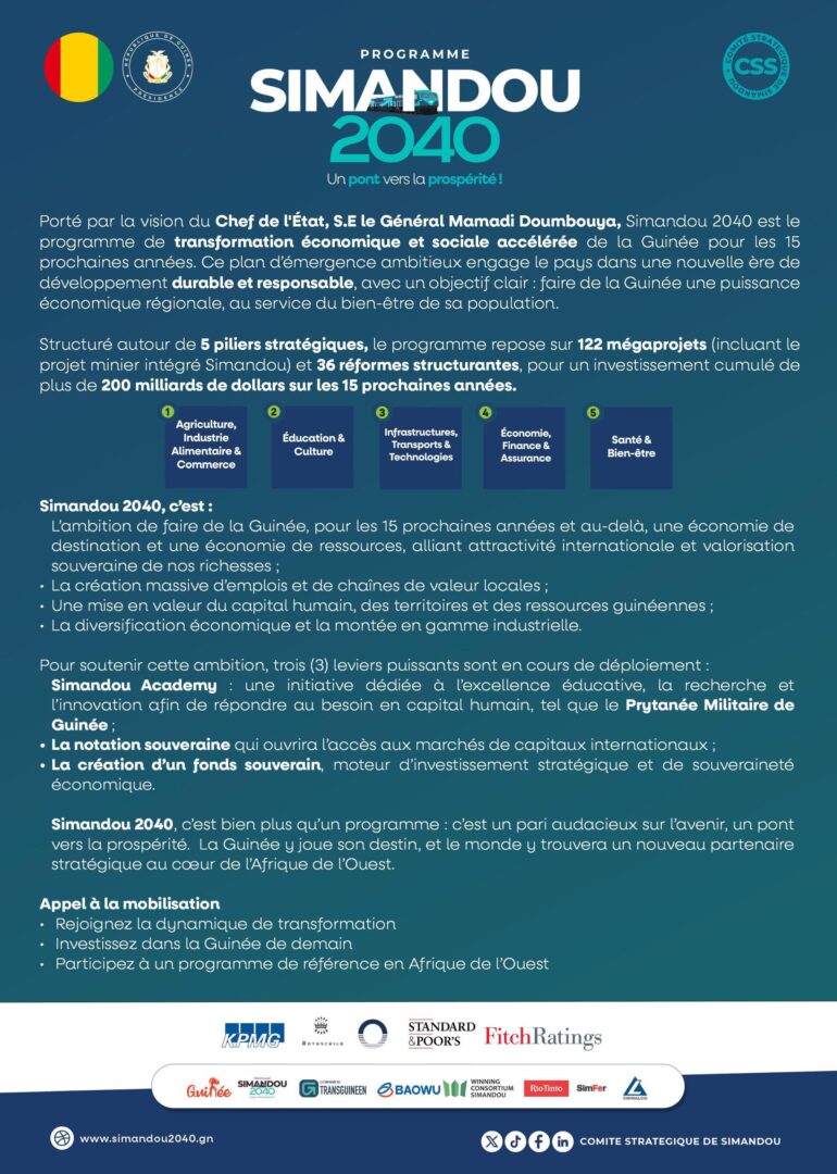 Portée par la vision du Chef de l’Etat, SE Général Mamadi Doumbouya, c’est le programme de transformation économique et sociale accélérée de la Guinée pour les quinze (15) prochaines années.