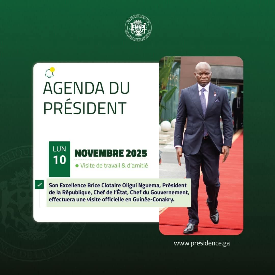 Dans le cadre d’une visite de travail et d’amitié, le président de la République gabonaise, Brice Clotaire Oligui Nguema, est attendu à Conakry ce lundi 10 novembre 2025, a annoncé la présidence de la République du Gabon.