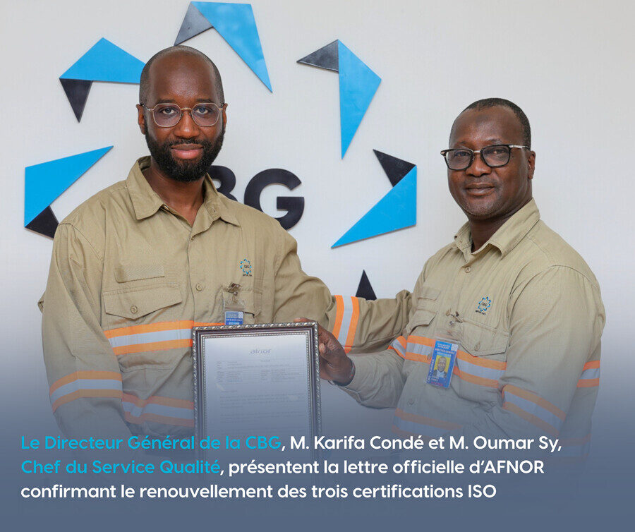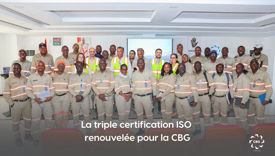 Kamsar, le 05 février 2026 – À la suite d’un audit rigoureux mené du 12 au 16 janvier derniers, la Compagnie des Bauxites de Guinée (CBG) a le plaisir d’annoncer le renouvellement officiel de ses trois certifications ISO 9001 – 14001 et 45001.