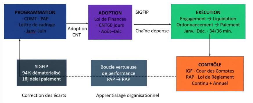 Cette architecture pyramidale garantit que chaque franc inscrit dans la LFI adoptée le 31 mars 2026 s’inscrit dans une logique stratégique de long terme, et non dans le simple réflexe de la reconduction automatique des crédits de l’année précédente, vice cardinal de l’ancien budget de moyens.