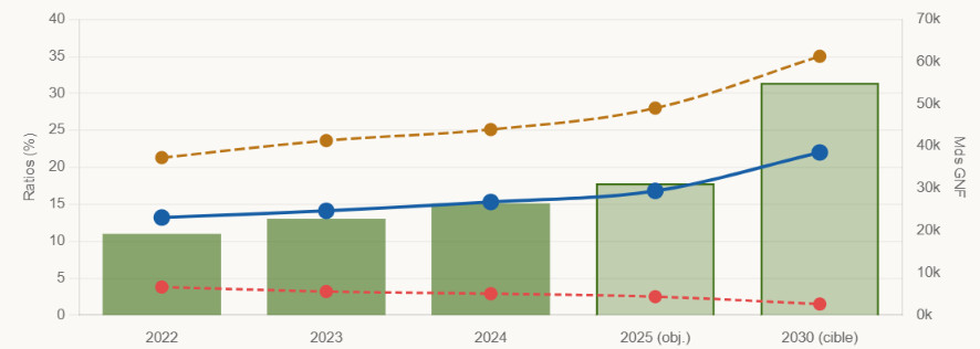 Tableau de bord financier. Guinée 2022–2030 (Source : DNB/MEF Guinée & FMI 2024)
