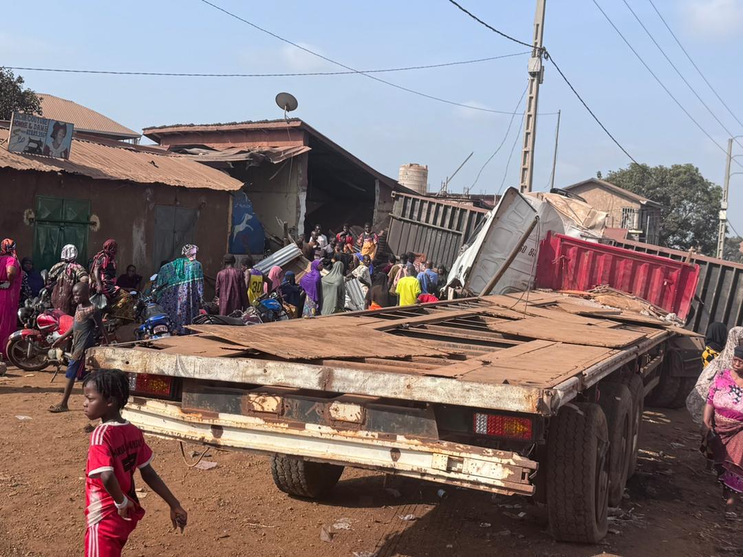 Selon les informations reçues sur les lieux du drame, un camion-remorque transportant un conteneur de 40 pieds en direction de Conakry a perdu le contrôle. Il a percuté un minibus transportant des passagers avant de finir sa course dans une concession et des boutiques. Parmi les victimes, le chauffeur, non encore identifié, a succombé sur place. La deuxième victime est une femme du nom de Makalé, résidant dans le quartier, qui a été percutée par le camion lorsqu’elle tentait de traverser pour monter dans le minibus immatriculé BC 0243.